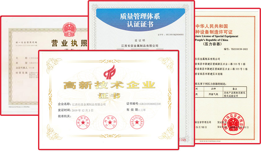 江西長(zhǎng)征金屬制品有限公司,原大型航天軍工企業(yè)江西長(zhǎng)征機(jī)器廠,是國(guó)家勞動(dòng)部定點(diǎn)生產(chǎn)氣瓶的專業(yè)廠家。公司擁有雄厚的軍工技術(shù)力量,設(shè)備先進(jìn),檢測(cè)手段完備,按照GB/T5100標(biāo)準(zhǔn)和GB/T5842標(biāo)準(zhǔn)、GB/T17673標(biāo)準(zhǔn)要求,建立了嚴(yán)格的企業(yè)管理制度和完整有效的產(chǎn)品質(zhì)量保證體系。